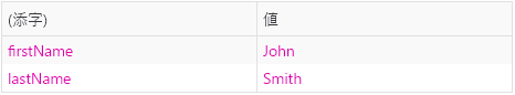 配列の要素やオブジェクトのプロパティが、それ自身配列やオブジェクトである場合、その要素やプロパティは列ごとに 1 つずつ、行に列挙されます。